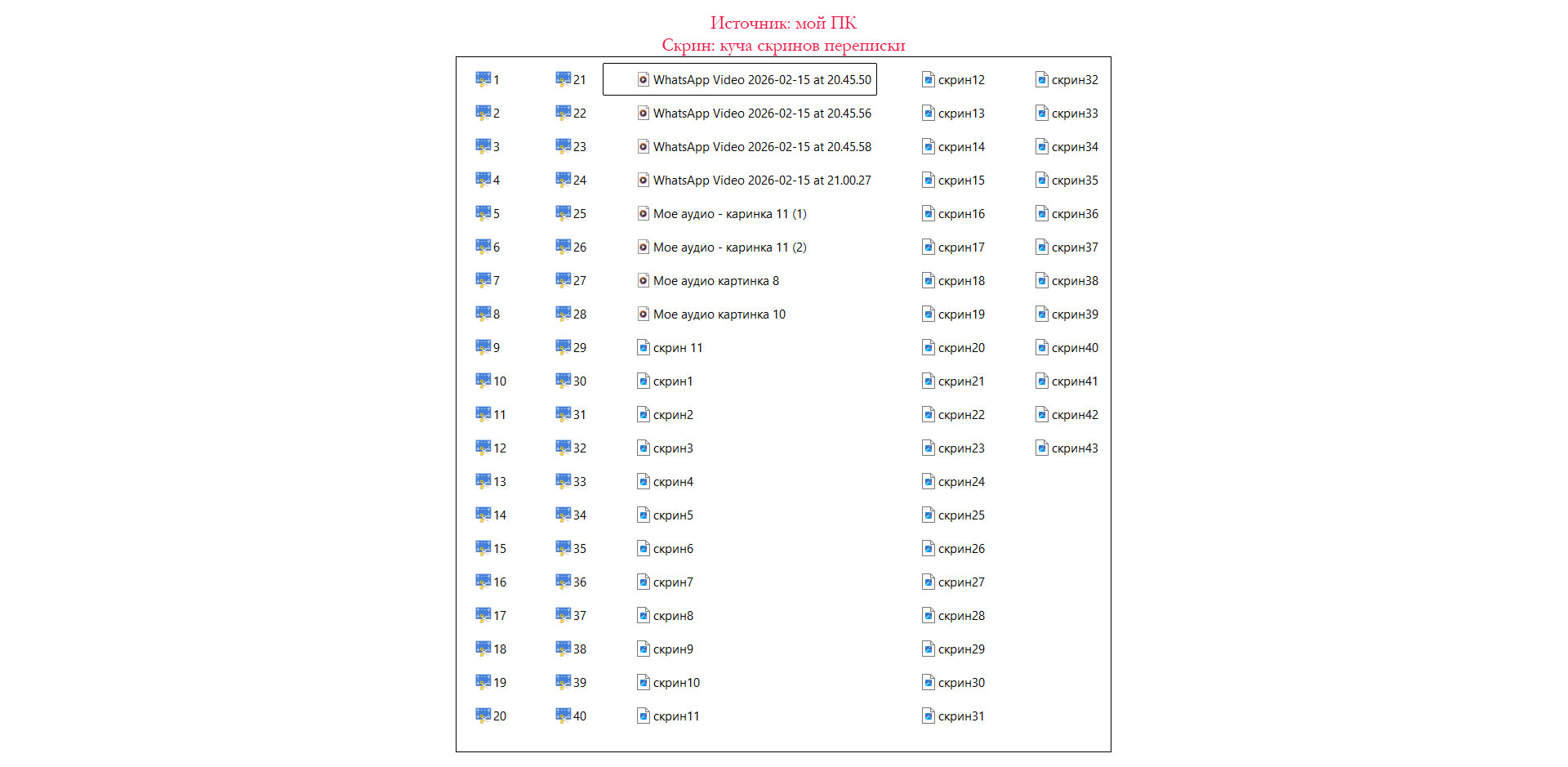 Папка на моем ПК с множеством скринов и аудио