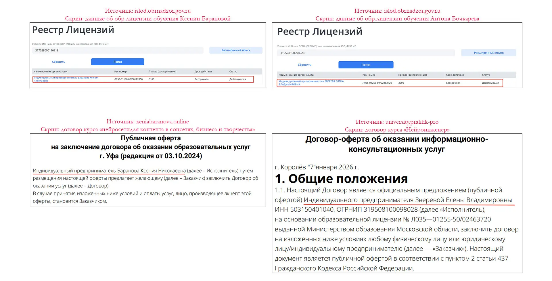 Лицензии на образование Антона Бочкарева и Ксении Барановой