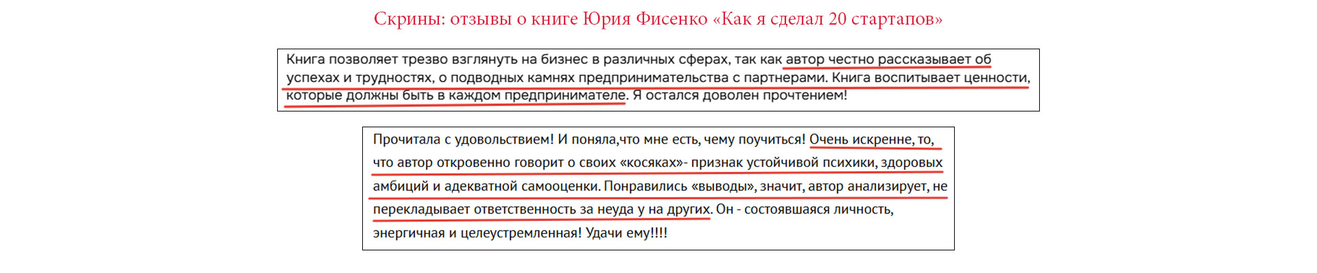 Юрий Фисенко "Как я сделал 20 стартапов" — положительные отзывы